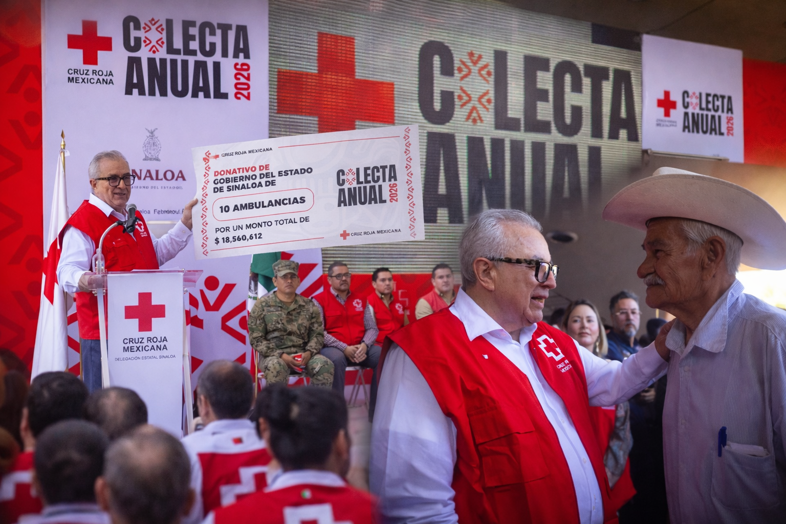 El Gobierno de Sinaloa donó 10 ambulancias a la Cruz Roja Mexicana con una inversión superior a 18.5 millones de pesos, en el arranque de la Colecta Anual 2026 para fortalecer la atención de emergencias en el estado.