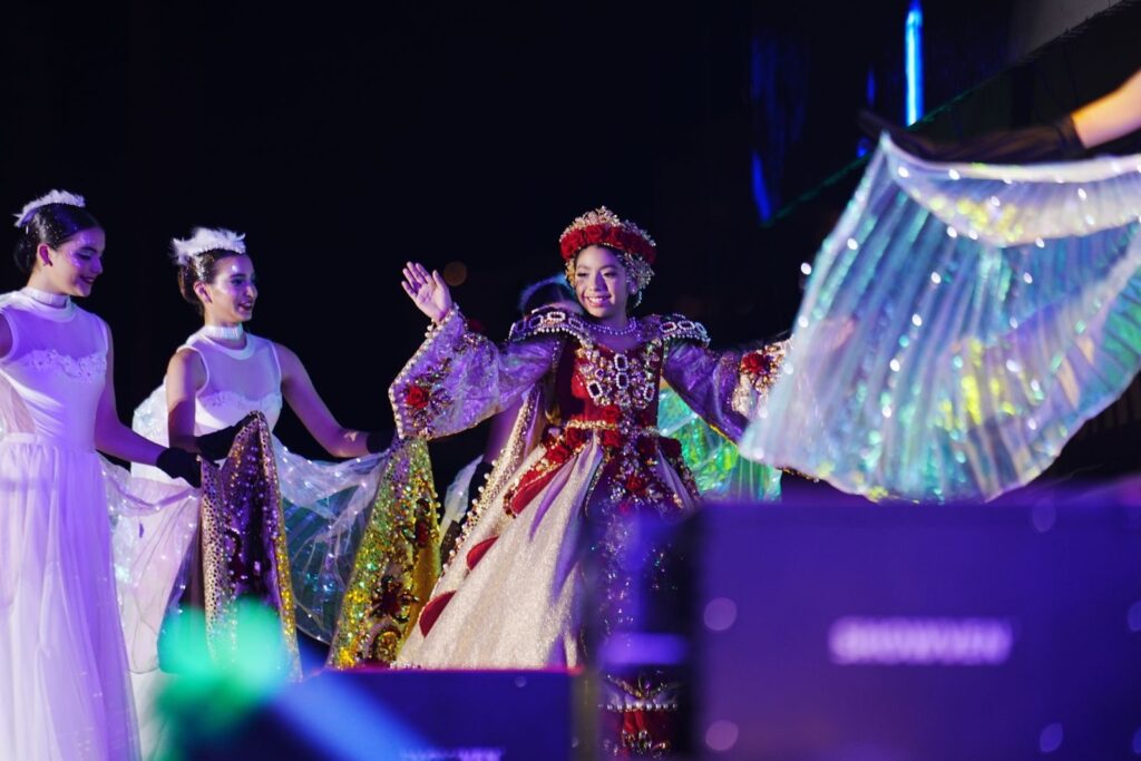 Eeilen I recibió sus atributos reales de manos de Eneyda Rocha, presidenta del Sistema DIF Sinaloa. Noelia I fue coronada por la presidenta municipal, Estrella Palacios Domínguez. Dos gestos de protocolo que, en escena, parecieron ritos antiguos: la transmisión simbólica de una alegría que no caduca.