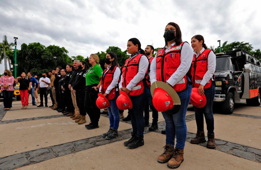 El director de Protección Civil Estatal Aurelio Roy Navarrete Cuevas encabezó este evento, acompañado de la diputada Cinthia Valenzuela Langarica, el magistrado Jesús Iván Chávez Rangel, el coordinador Municipal de Protección Civil Jesús Bill Mendoza Ontiveros, el coordinador Estatal de la Guardia Nacional en Sinaloa Ramiro Ramírez López, el teniente de Infantería de la Novena Zona Militar Lucio Ortega Rosa y el coronel de Infantería de la Guardia Nacional Fidencio Márquez Reyes.