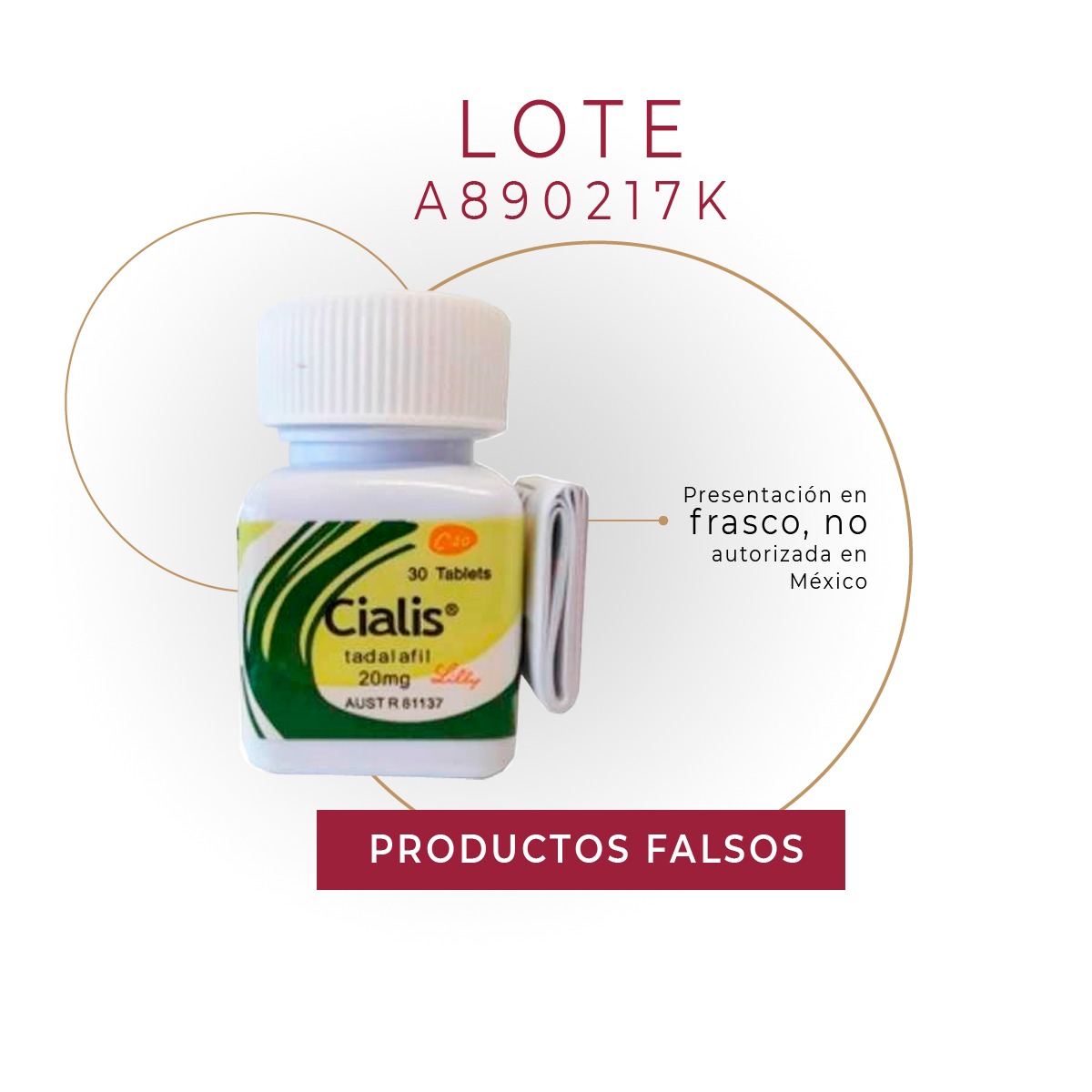 De acuerdo con el documento, dicho producto, que también funciona como tratamiento de síntomas urinarios asociados al agrandamiento de la próstata, también conocido como hiperplasia prostática benigna, se trata de los lotes que la empresa fabricante desconoce como propios: A91377K y C599653, presentación de 20 mg y 5 mg respectivamente, tratándose de productos falsificados. Aunado a ello, Cofepris informa que el lote A890217K en frasco también es falso, toda vez que dicha presentación no está autorizada para México.