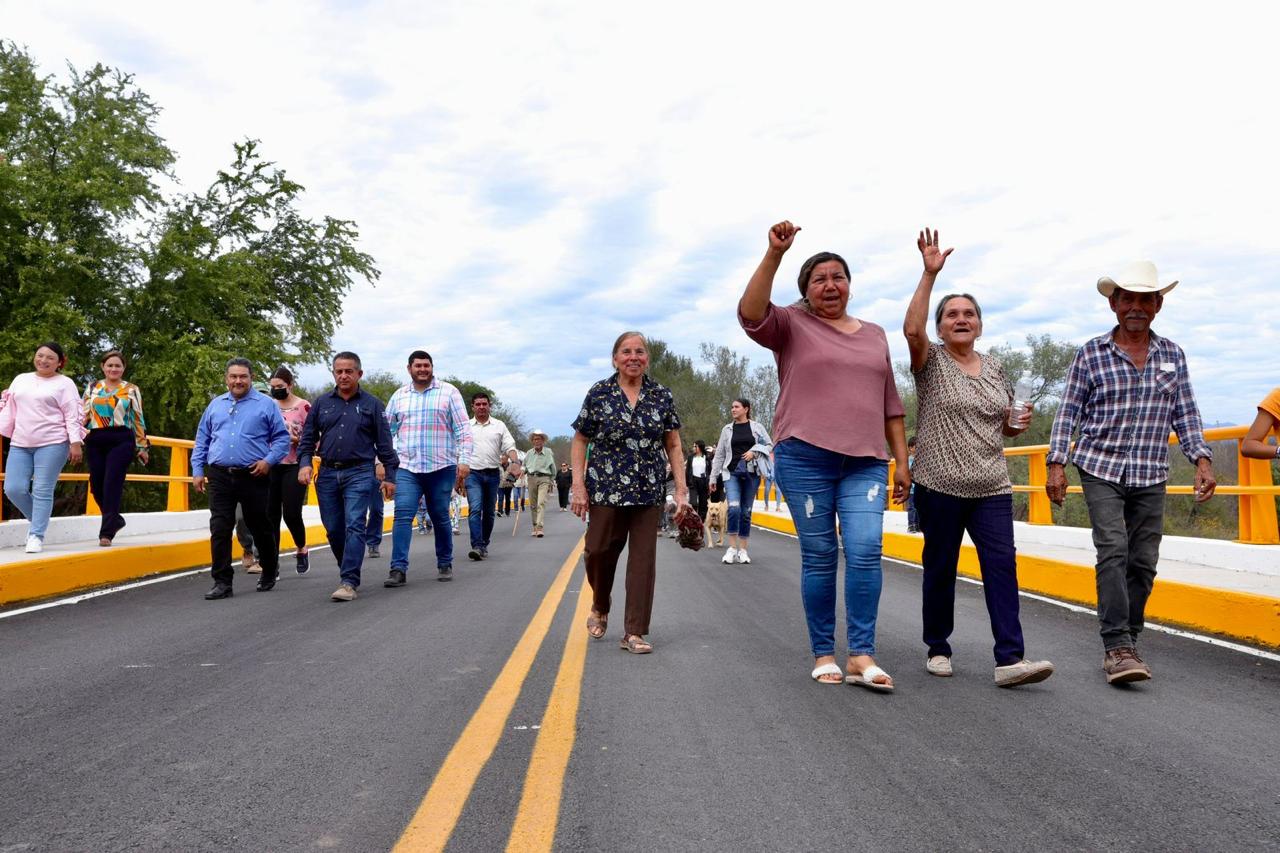 Posteriormente, la comitiva se trasladó a San Benito, donde se inauguró la construcción del puente en el arroyo Los Chinos, con una longitud de 61.20 metros, obra que permitirá el paso entre una comunidad y otra en época de lluvias, evitando que el poblado permanezca aislado, demanda social que fue atendida y cuyos aspectos técnicos fueron detallados por Landeros Güicho.