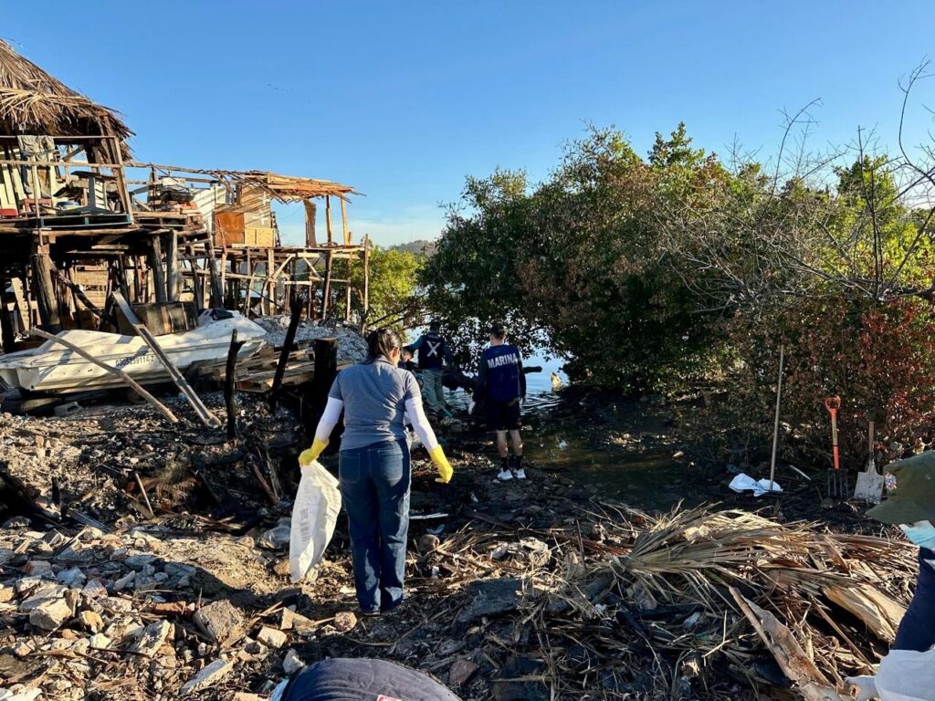 Electrodomésticos, muebles, madera y plásticos fueron retirados del área natural, materiales que representan riesgo directo para la flora y fauna del manglar.