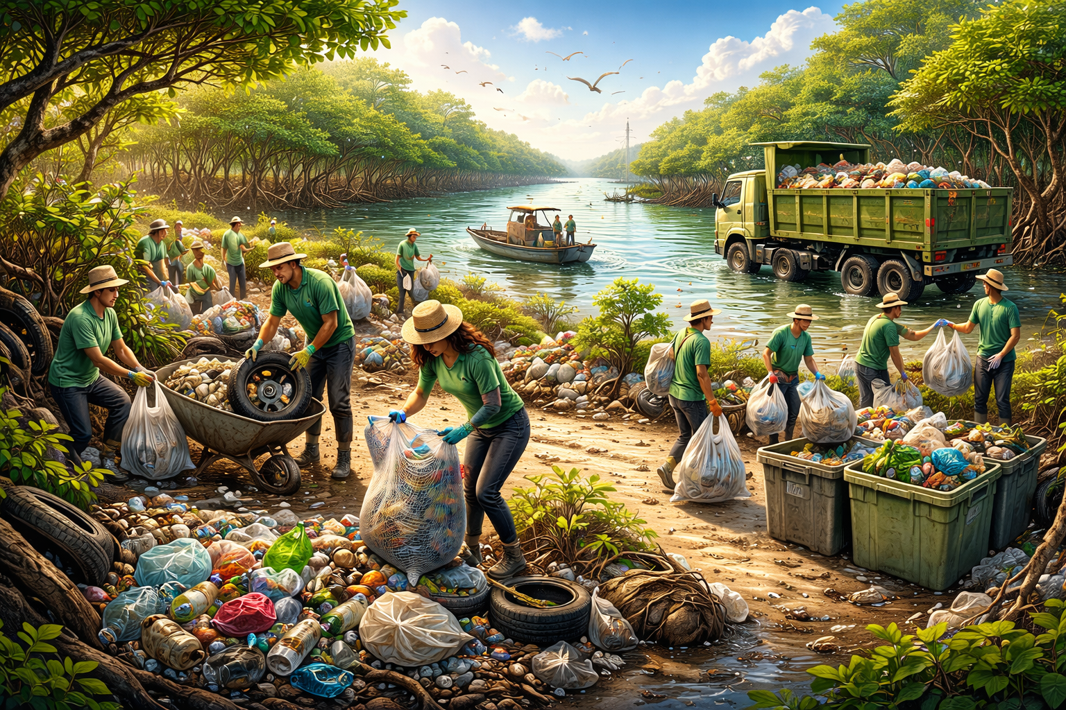 Los manglares funcionan como barrera natural ante tormentas, ayudan a prevenir erosión y son hábitat de múltiples especies marinas y aves. La acumulación de residuos sólidos altera ese equilibrio y genera impactos ambientales acumulativos.