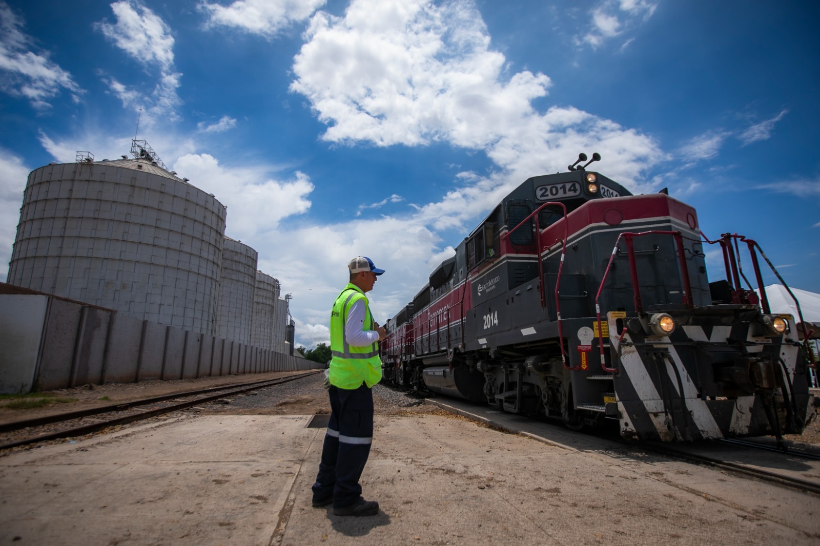 Navolato, Sinaloa, a 4 de julio de 2023.- En compañía del director general de Seguridad Alimentaria Mexicana (SEGALMEX), Leonel Cota Montaño, el gobernador Rubén Rocha Moya dio el banderazo de salida a un tren que desfogó las primeras 9 mil toneladas de maíz de una bodega de Navolato, las cuales serán distribuidas en los almacenes de DICONSA para abastecer las diferentes tiendas que hay en el centro y sureste del país.