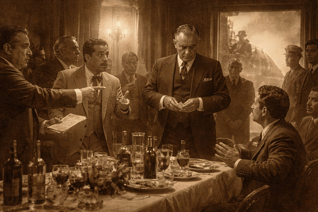Una mañana, Calles llegó sin aviso. Le organizaron un banquete en el Hotel Belmar. El presidente municipal Alfonso Tirado no estaba dispuesto a cargar al erario con la cuenta. La escena es casi teatral: el diputado Ignacio Lizárraga exigiendo el pago “a nombre de los mazatlecos”; Tirado respondiendo que no había partida presupuestal para pagar agasajos presidenciales. Calles terminó pagando la cuenta. Horas después, abrazaría al joven alcalde en la estación y exclamó una frase que marcó su sentencia de muerte: