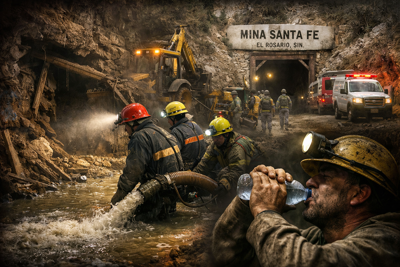 A 10 días del colapso en la mina Santa Fe, autoridades mantienen la esperanza de encontrar con vida a tres mineros atrapados en Rosario, Sinaloa. La clave está en un factor crítico: el acceso al agua, que según la ciencia podría extender el límite de supervivencia bajo tierra.
