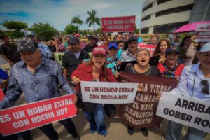 En vez de eso escuchamos un mensaje elíptico de “seguiremos apoyando al gobierno de Sinaloa” y un reconocimiento a Rubén Rocha por su tarea.