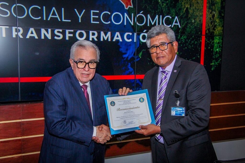 Al término del encuentro, autoridades académicas del Centro de Estudios Superiores Navales entregaron un reconocimiento al mandatario sinaloense por su participación en el programa académico.
