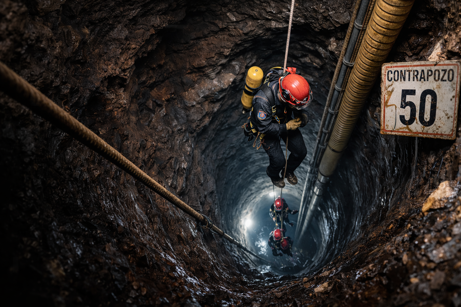 El descenso por el contrapozo marca un punto de inflexión, pues el rescate pasa de contención a exploración directa en zonas críticas, con mayor riesgo y también mayor posibilidad de encontrarlos.