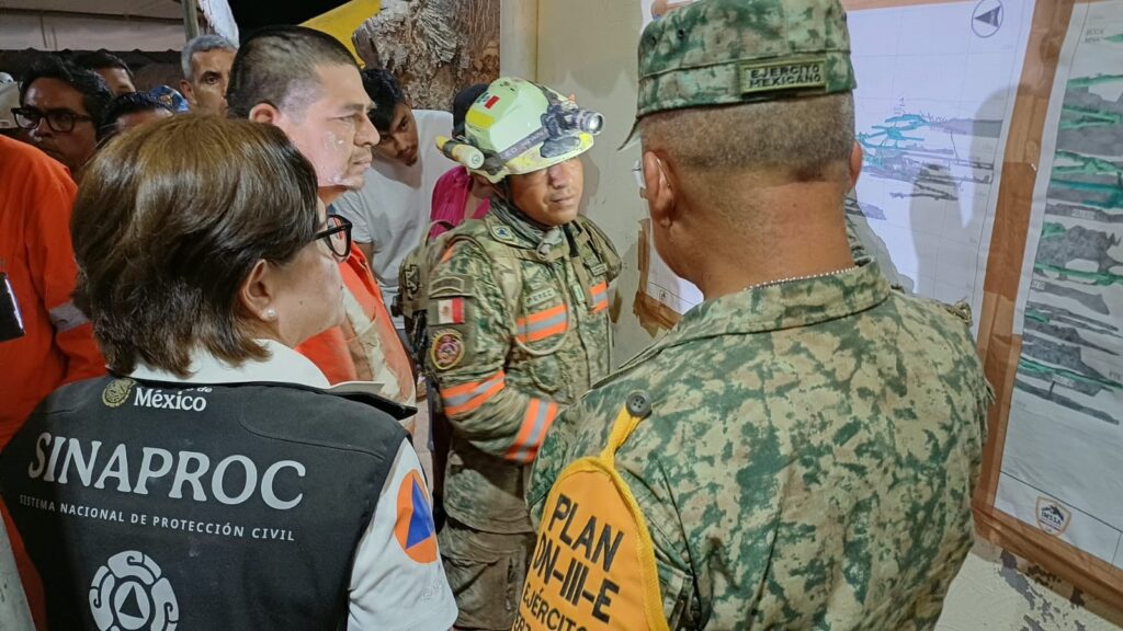 Autoridades federales y estatales han reiterado que no es posible un ingreso seguro todavía, por lo que la estrategia prioriza garantizar condiciones estructurales antes de intentar el acceso final. Participan equipos especializados de rescate, con apoyo técnico y maquinaria pesada, en una operación que no se ha detenido y que se mantiene bajo monitoreo permanente.