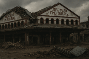 En un primer recorrido del equipo desplegado por Paralelo 23, los daños eran evidentes: el Mercado José María Pino Suárez, inaugurado el 5 de mayo de 1900 y símbolo del centro de abasto de la ciudad, quedó reducido a escombros; su estructura decimonónica fue lanzada por el aire y azotada contra el piso.