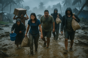 Sin comunicación y con apoyo federal, estatal y municipal desorganizado, los ciudadanos improvisaron brigadas de rescate, caminando sobre el lodo para salvar la vida y buscar a los suyos. Las escenas se repiten: madres con niños en brazos, ancianos empapados y jóvenes formando cadenas humanas para cruzar calles convertidas en ríos.