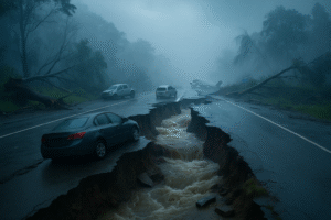 La desesperación domina las calles: familias corren entre cables caídos, vehículos flotan en avenidas convertidas en ríos y los hospitales saturados intentan resistir la crisis. En la colonia Urías, el agua alcanzó el segundo piso de las viviendas.