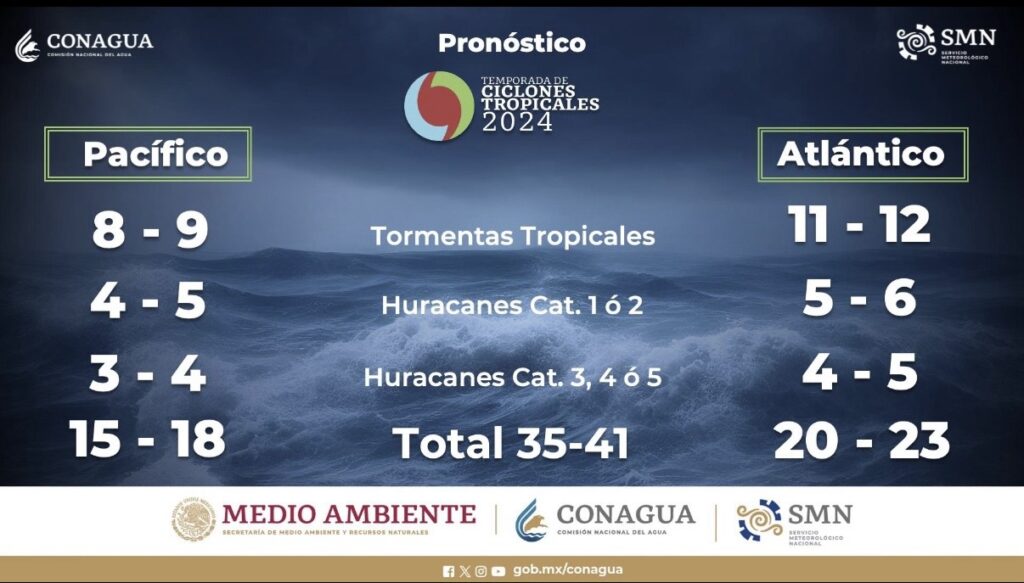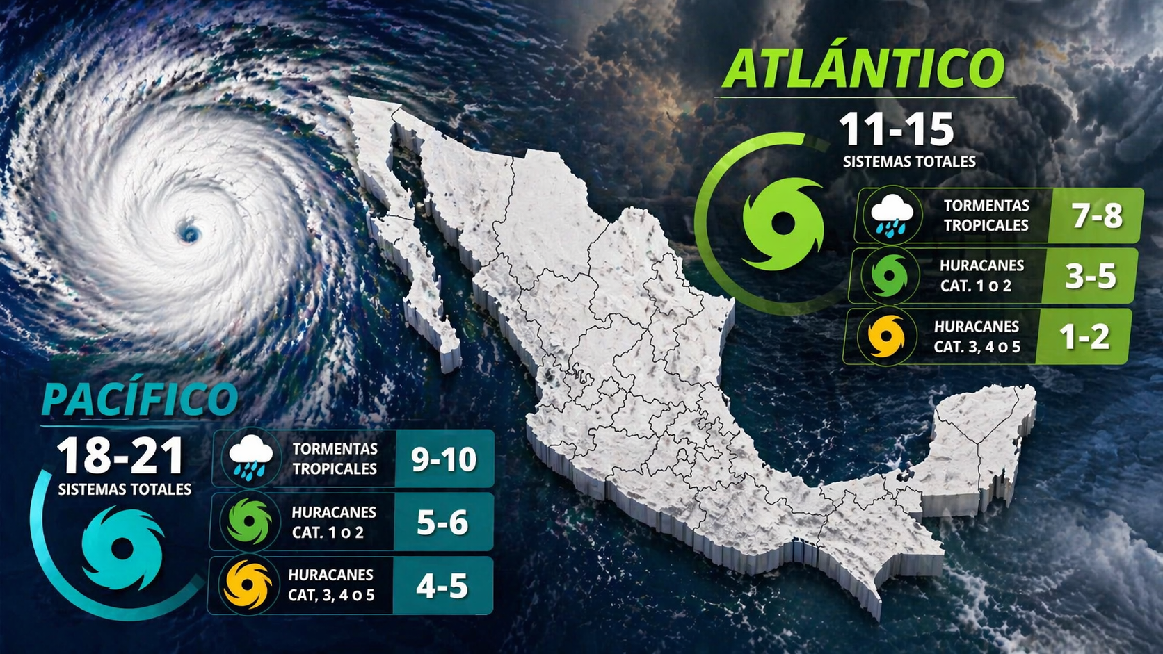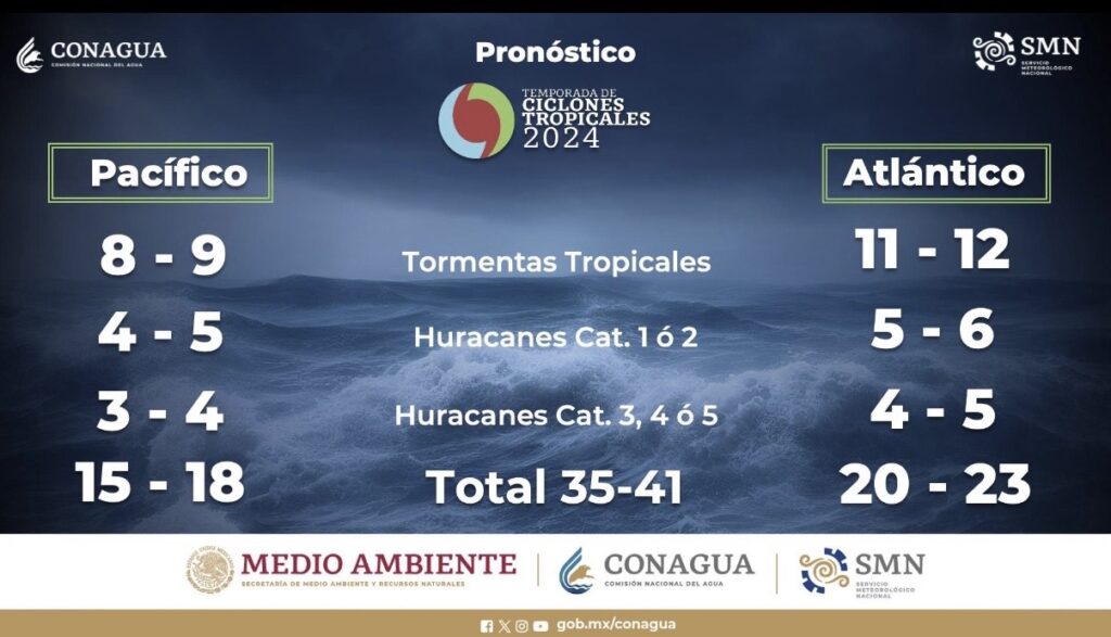 De acuerdo con la información presentada durante la Reunión Nacional de Protección Civil, se prevé la formación de entre 18 y 21 sistemas en el océano Pacífico, y de 11 a 15 en el Atlántico, dentro de parámetros cercanos al promedio histórico.